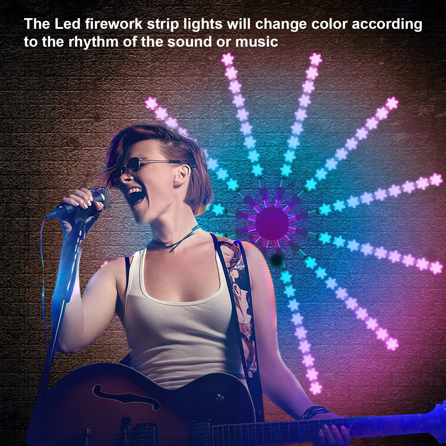 • 【Multifunctional Fireworks LED Lights】The brightness of Smart Firework LED Lights can be adjusted and provide millions of different colors. With a high-sensitivity microphone, The fireworks lights will change with the rhyth-m of the music. Make you enjoy the fun with the color changing following the music rhyth-m or your voice.
