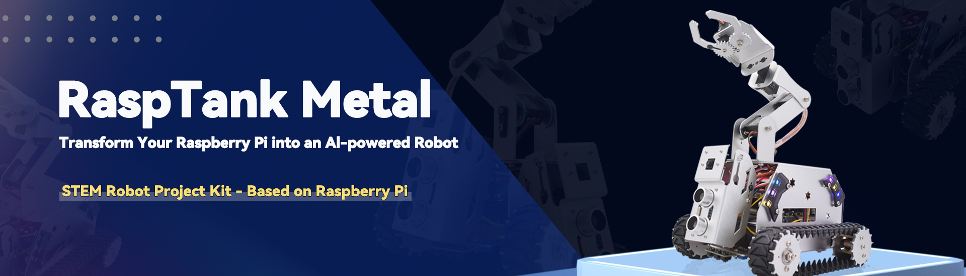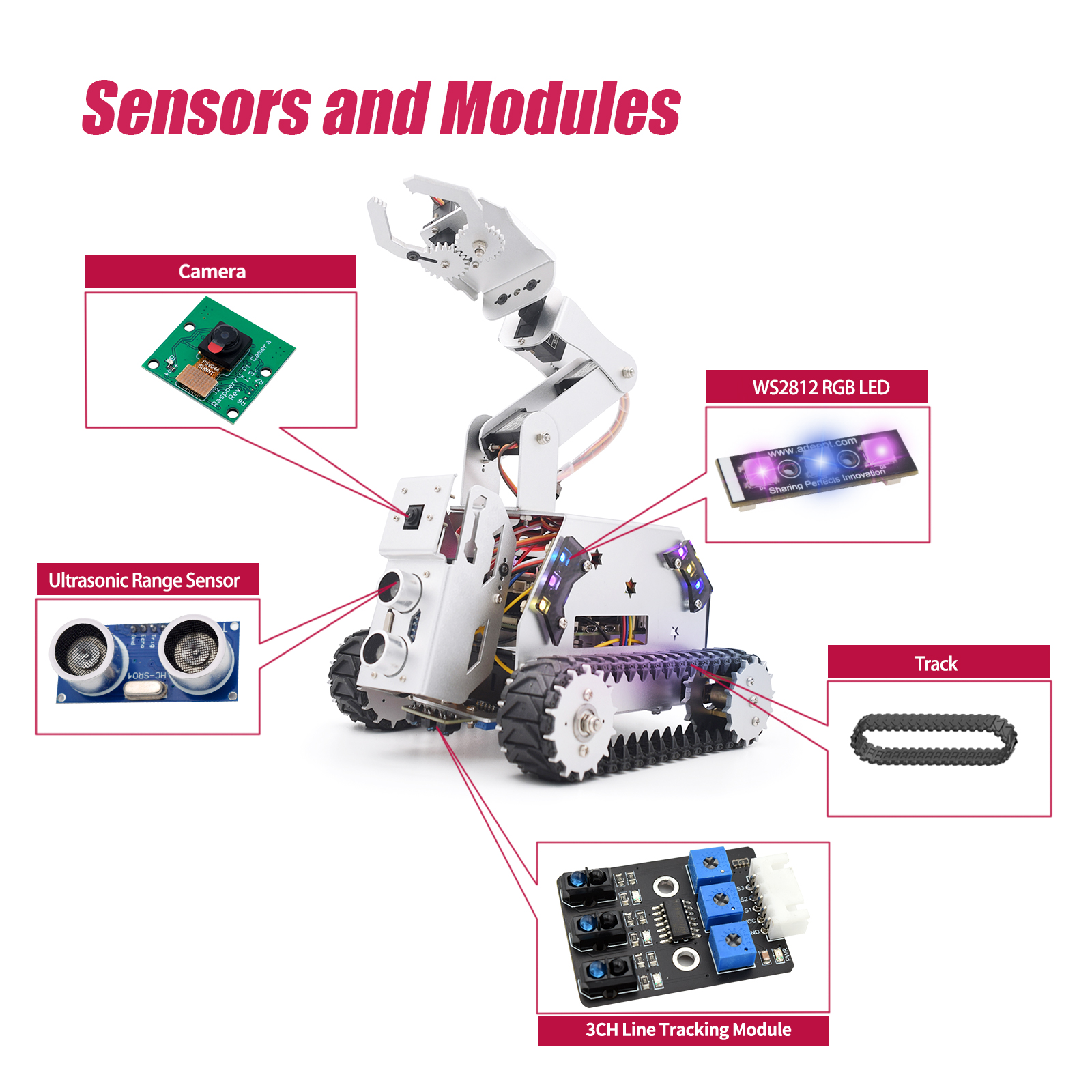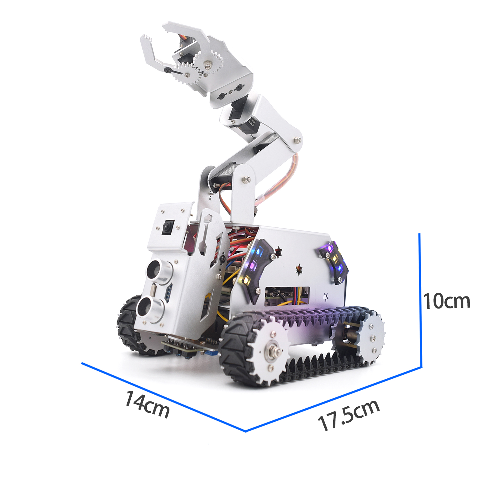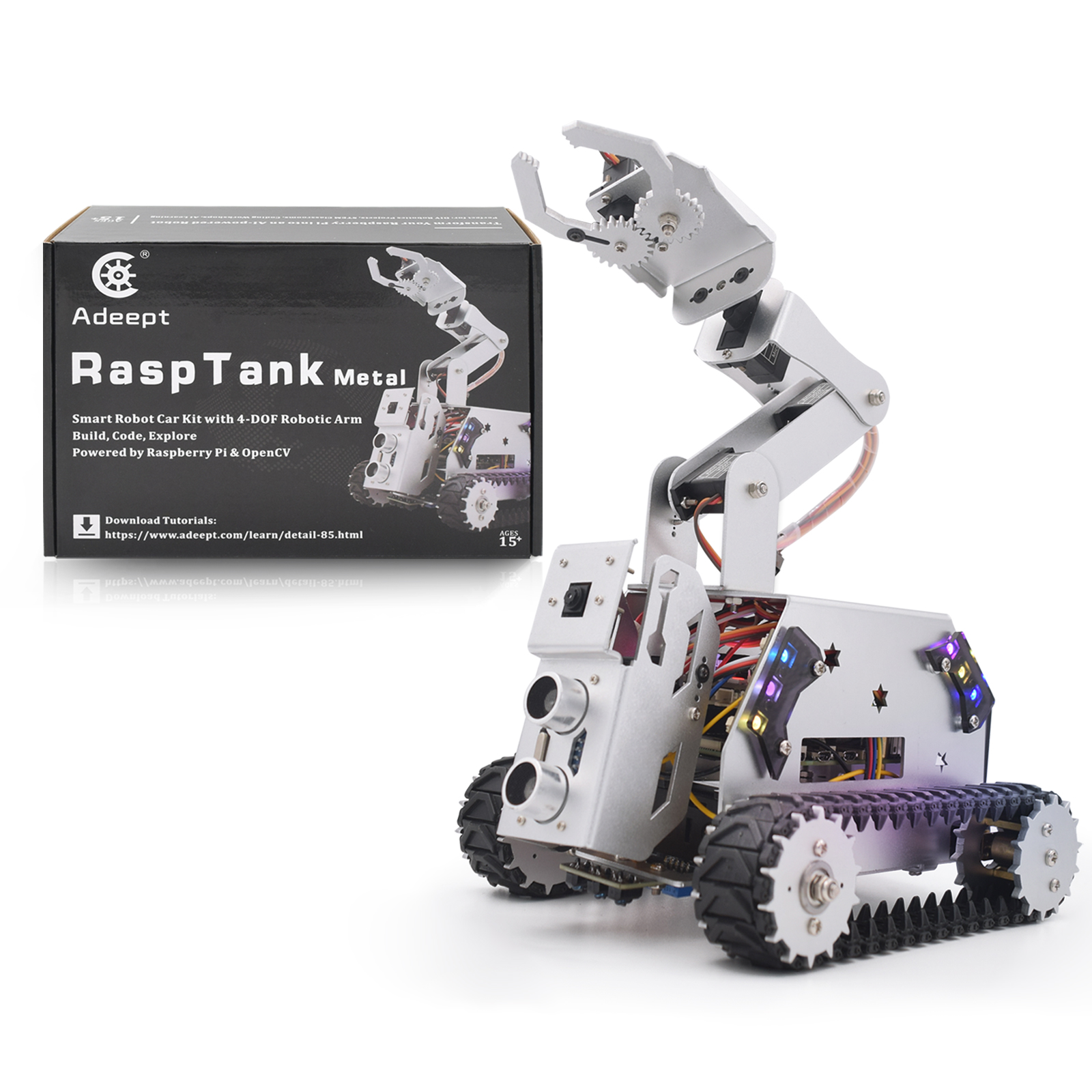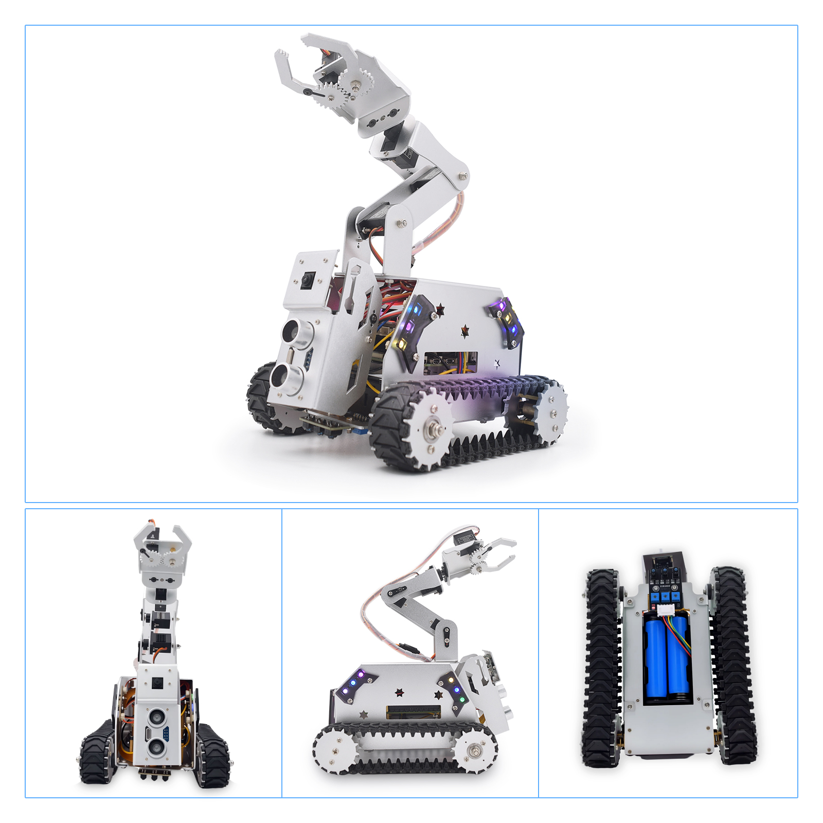 • 4-DOF robotic arm & Aluminum alloy tracked chassis kit;