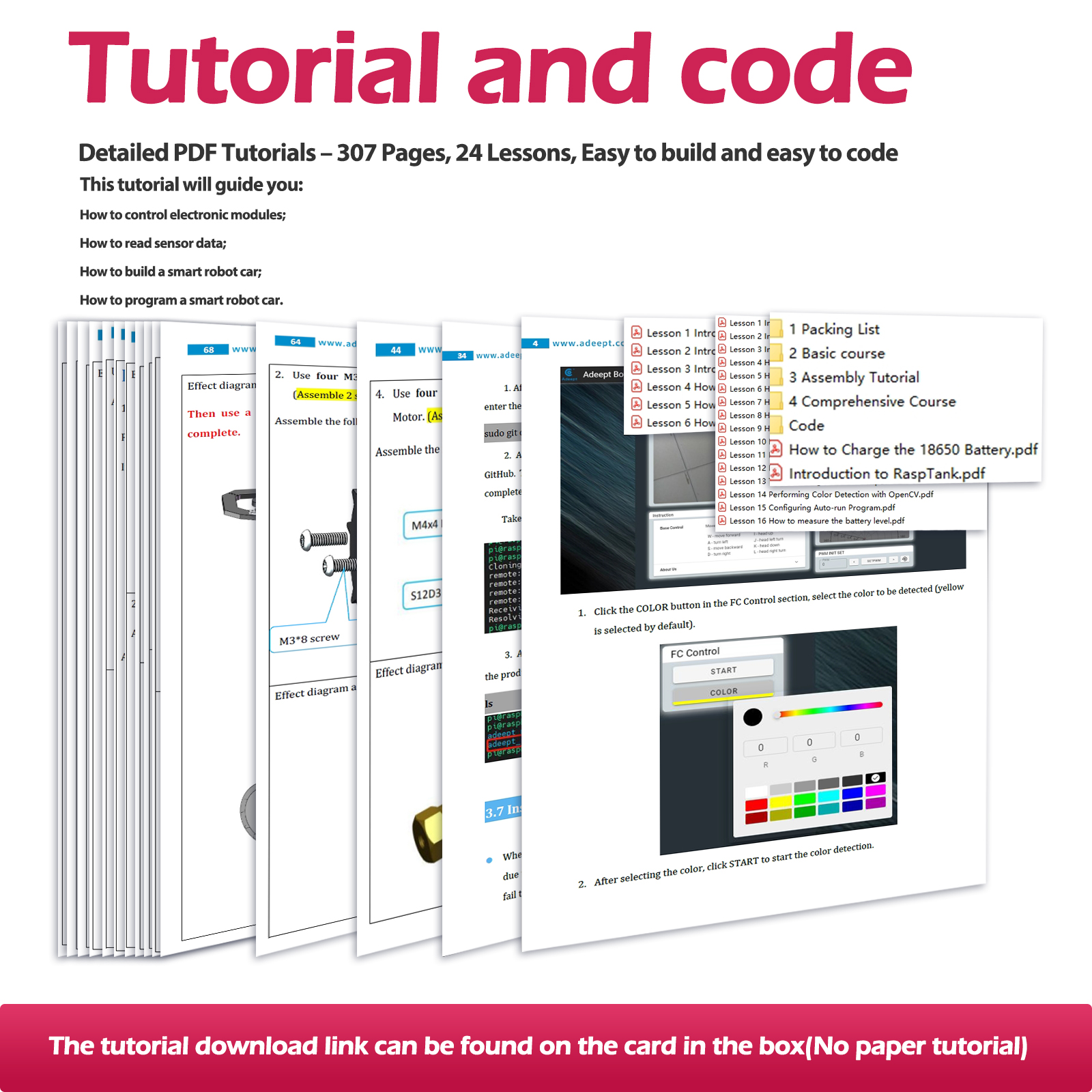 • 300+ pages full-color manual(PDF, download from Adeept website);